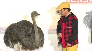 上島竜兵、ダチョウ相手にキス芸披露?
