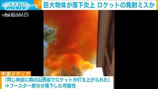 中国で巨大物体が落下し炎上 ロケットの発射ミスか(2020年9月9日)